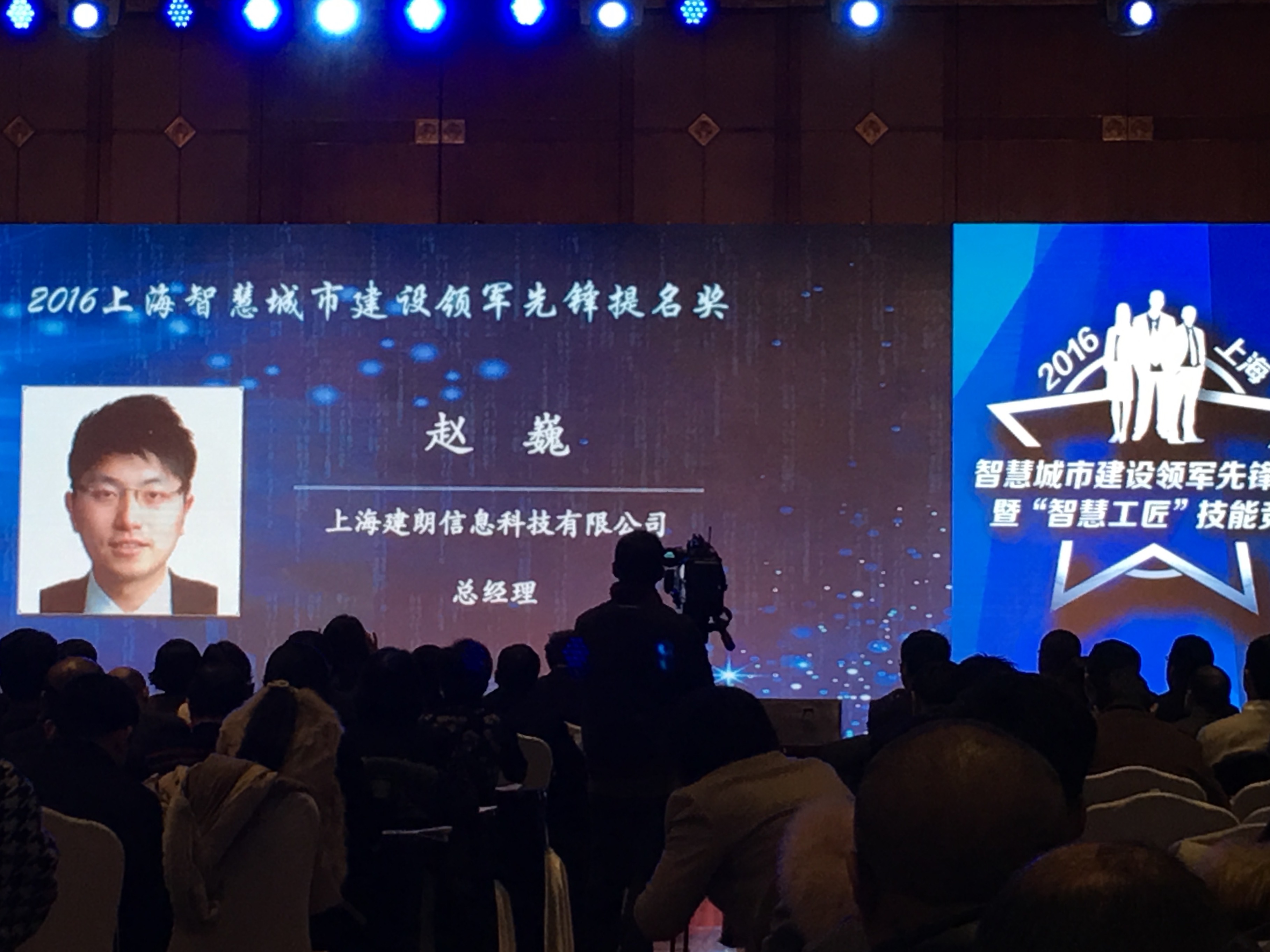 上海午夜视频APP色站下载信息科技有限公司总经理赵巍,荣获2016上海智慧城市建设领军先锋评选暨“智慧工匠”技能竞赛——2016上海智慧城市建设领军先锋提名奖!