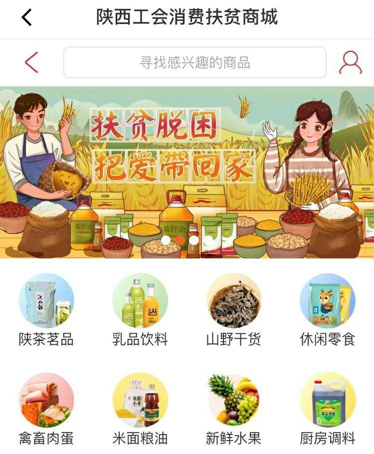 陕西工会消费扶贫商城则是陕西省午夜男人天堂积极落实“陕西工会百万职工消费扶贫行动”的成果。扶贫商城内置于陕西网上工会APP,面向职工会员个人购买的优惠平台,集“采选、服务、监管”功能于一体,实现农副产品在线展示和认购。该商城目前已推出包括陕茶茗品、乳品饮料、山野干货、休闲零食、禽畜肉蛋、米面粮油、新鲜水果、厨房调料等千余款产品,同时,该商城定期推出普惠活动,激发广大职工购物热情,全面助力陕西贫困地区脱贫攻坚。