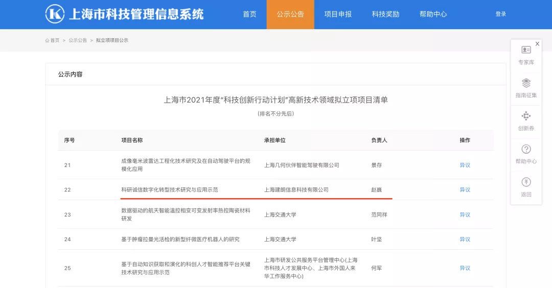 该项目旨在通过构建符合科研规律、适应建设科技强国要求的科研诚信体系,加强科研活动全流程诚信管理,建立科技信用识别规则,形成科技领域信用信息共享应用范式,支撑本市科技信用数字化,完善科研诚信工作机制,优化科技创新环境,助力强化科技创新策源。本课题的成功申报,将提升公司科技政务服务研究、软件研发水平,整体增强公司科技政务的数字化服务能力。