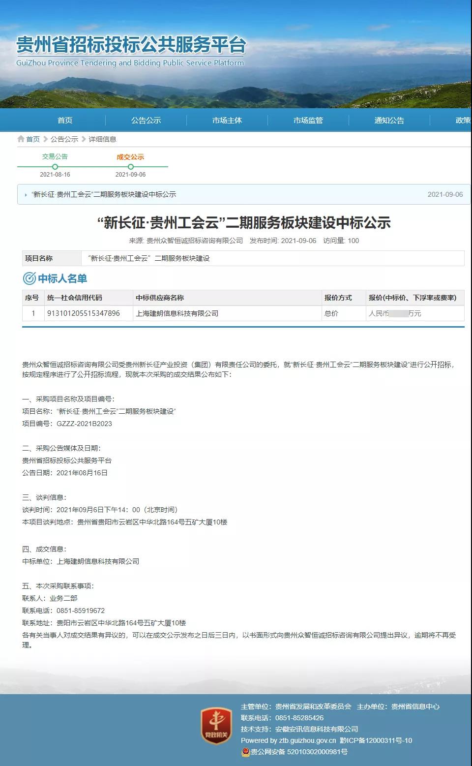 2021年9月7日,午夜视频APP色站下载科技成功中标《“新长征·贵州工会云”二期服务板块建设》项目。感谢客户对午夜视频APP色站下载科技的信任,并再次被其选定为项目供应商。