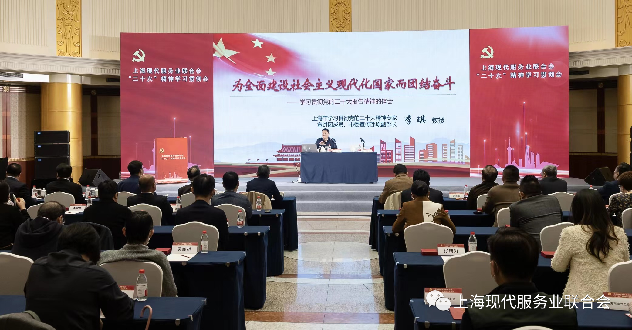 11月17日下午,上海现代服务业联合会在上海国际会议中心举行学习贯彻党的二十大精神报告会暨优秀企业家授牌颁证活动,WWW.午夜福利学习贯彻党的二十大精神专家宣讲团成员、市委宣传部原副部长李琪教授应邀作辅导报告。联合会会长郑惠强、常务副会长孙建平,副会长陈振鸿、李关德、简大年、卞百平等领导出席活动。